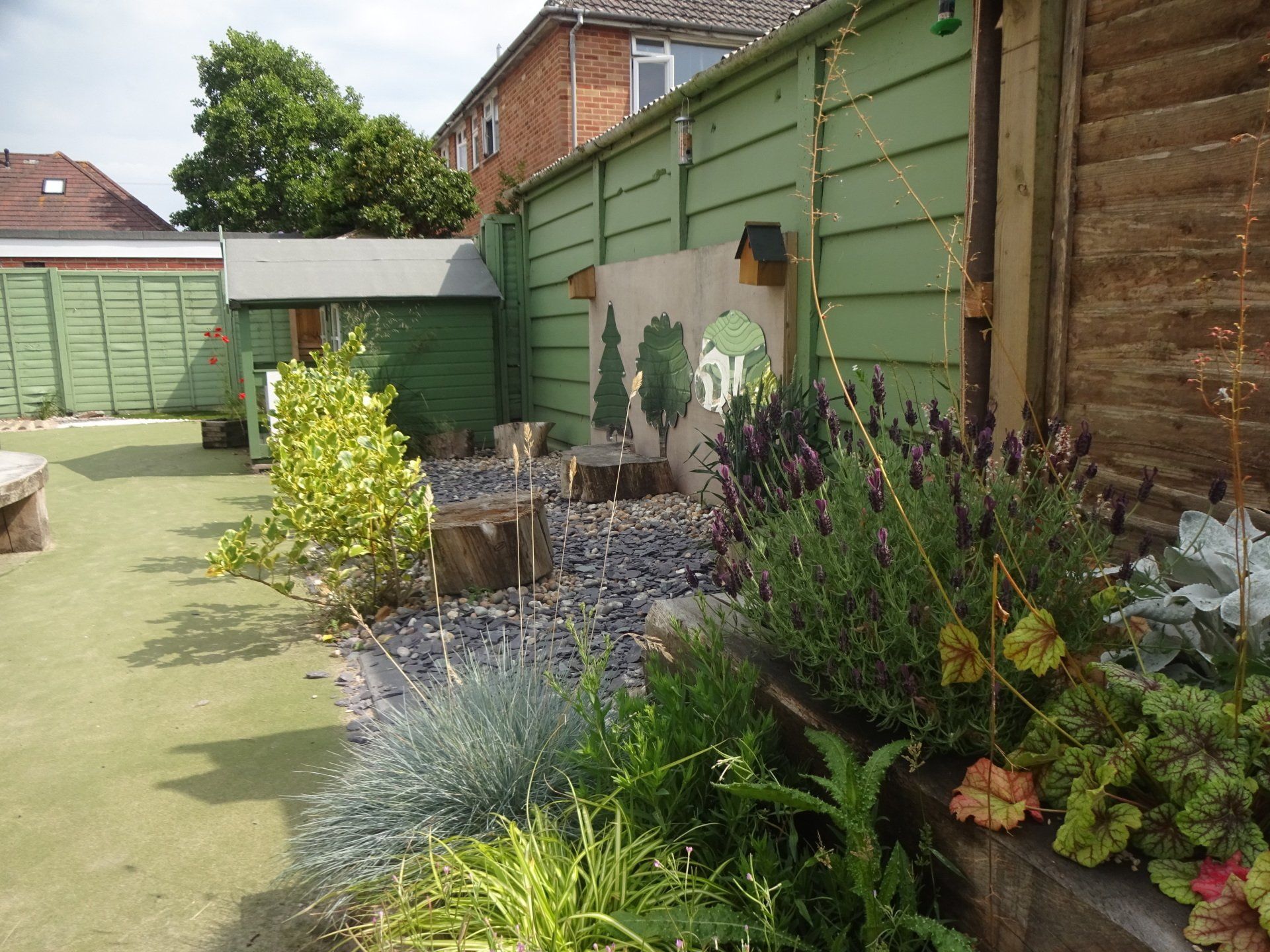 Our garden is a fantastic space, offering our children lots of room to run off any excess energy, play in the large sand pit, do some gardening, ride a tricycle or make mud pies! We are an all-weather nursery and all of our children go outside every day, rain or shine. We have awnings along the back of the nursery to offer the children shade on sunny days and shelter on wet days so they can still get the fresh air they need.